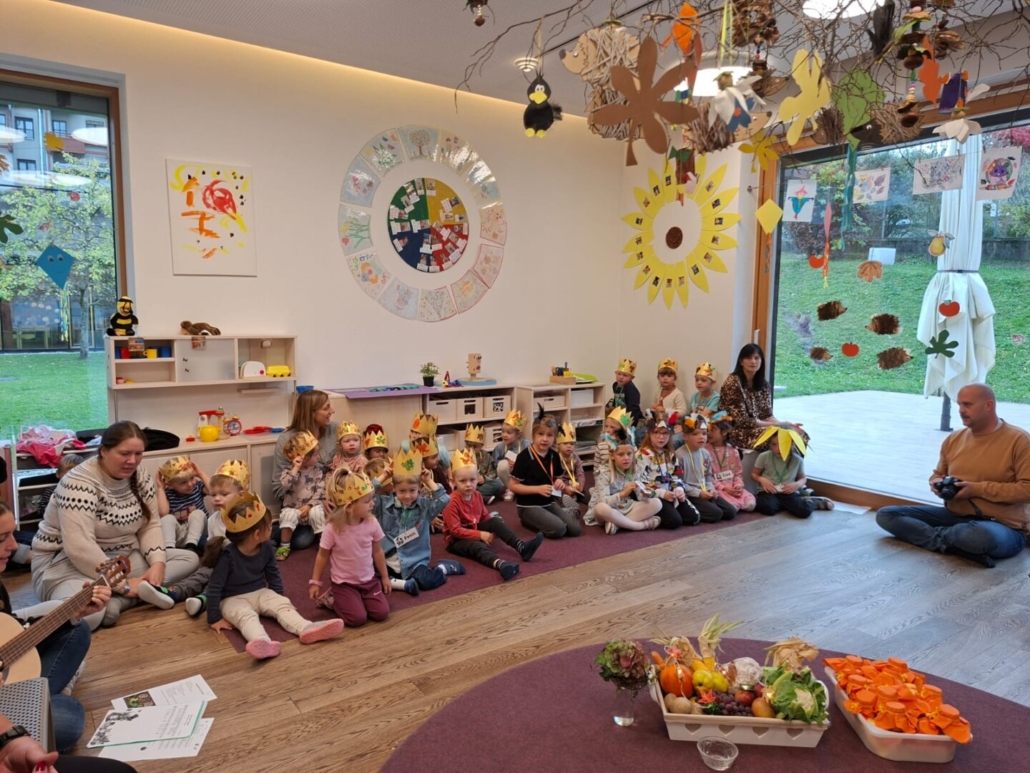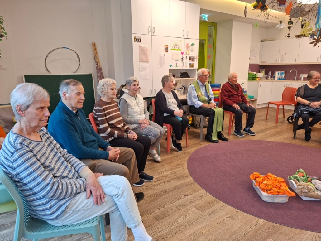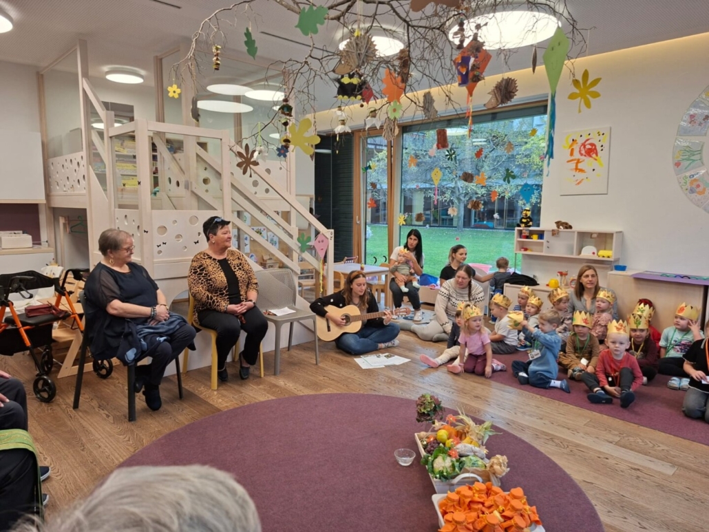 Die Zwerge vom Falkensteinkindergarten und Krippe haben die Bewohner:innen vom betreuten Wohnen zu ihrem jährlichen Erntedankfest eingeladen. Mit Begleitung der Hausleitung sind viele Bewohner:innen dieser Einladung gefolgt. Man traf sich direkt im Kindergarten, und alle konnten gemeinsam mit den Kindern ihr feierlich gestaltetes Danke-Fest erleben. Auch Dekan Martin Müller war zu Gast und segnete die Erntedank-Gaben. Anschließend war noch genug Zeit für eine gemeinsame genüsslichen Danke-Jause mit Gemüse und Obst. Die Hausleitung brachte zusätzlich noch frisch gebackene Brezen, die sich die Zwerge und die Bewohner:innen bei einem guten Tassal Kaffee so richtig schmecken ließen.