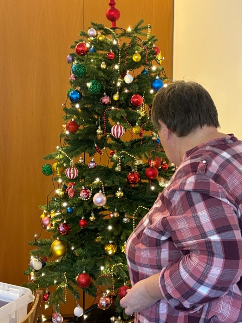 Die Bastelgruppe des Hauses hat auch heuer wieder mit viel Fleiß, Einsatz und Engagement das Haus der Generationen und die Waizer Stube weihnachtlich geschmückt und verschönert. In den Gängen vom Haus werden ebenfalls wieder Christbäume aufgestellt und mit den Bewohner:innen gemeinsam „aufgeputzt“.