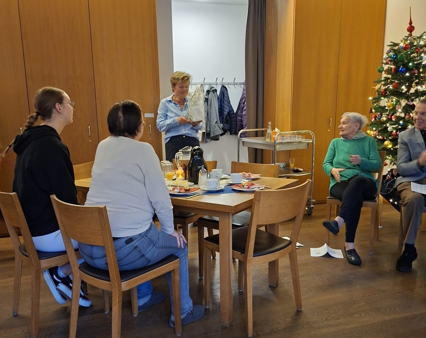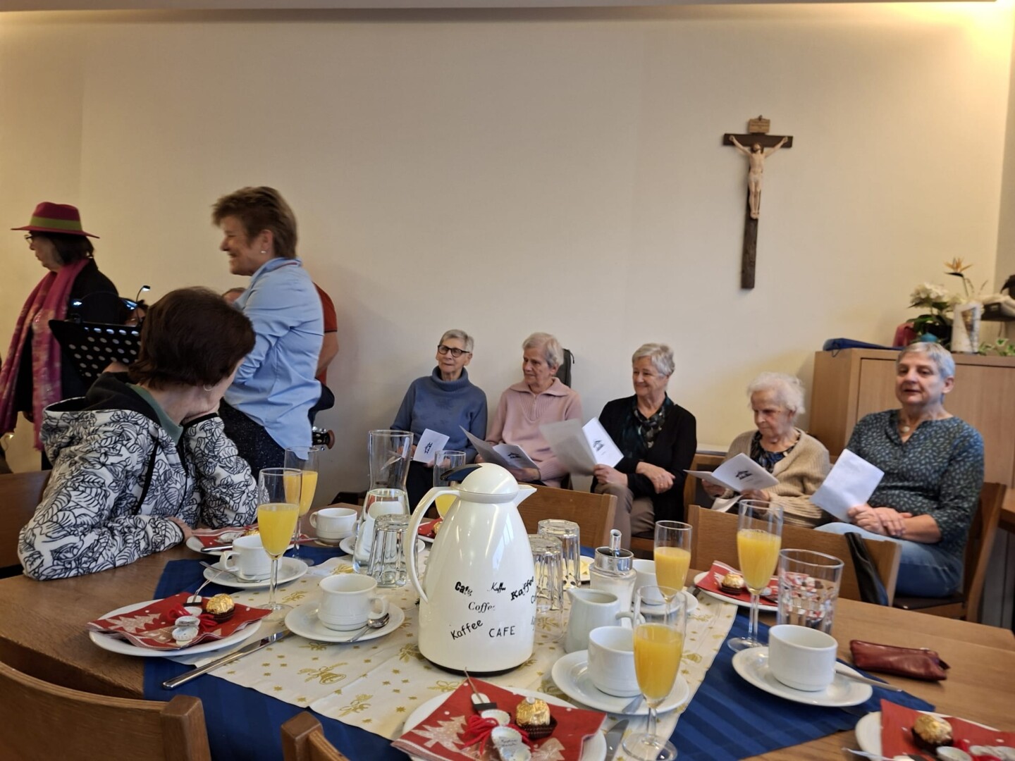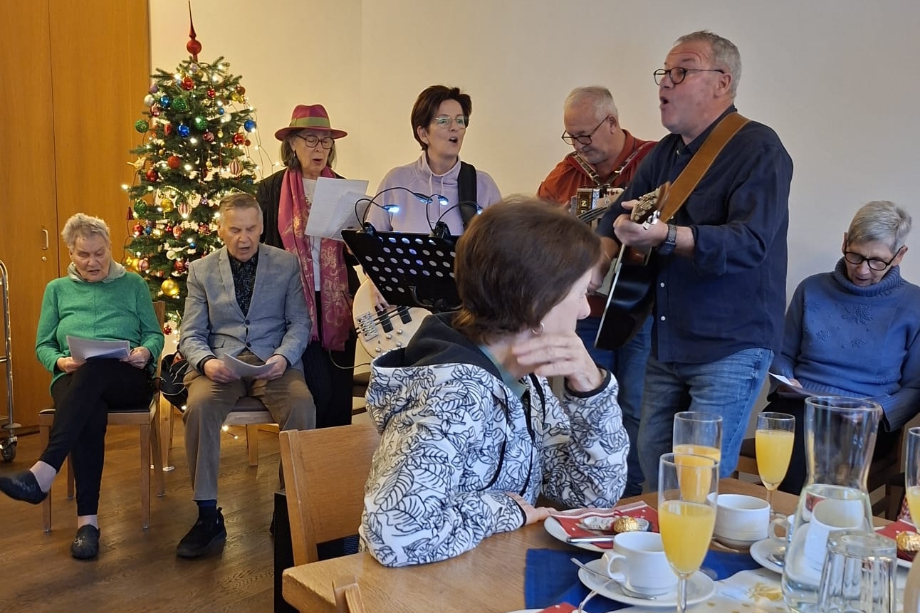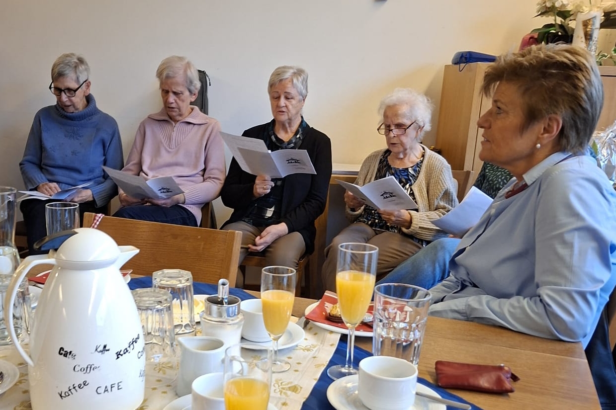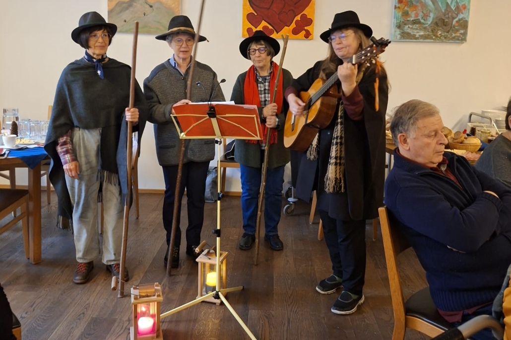 Auch heuer durften die Bewohner:innen vom Haus im Rahmen des traditionellen Weihnachtsfrühstücks den weihnachtlichen Klängen und Weisen der Anklöpfler lauschen. Der Falkenstein-Chor überraschte alle Besucher:innen mit ihrem Auftritt unter der Leitung von Sigi und Helga, die auch ihre Musikfreunde Christine und Martin mitgebracht hatten. Der Vinzenzverein Schwaz hat wiederum die Kosten für das Frühstück übernommen und so manchen Bewohner:in mit einer finanziellen Unterstützung bedacht. Ein herzliches Vergelt’s Gott dafür!!