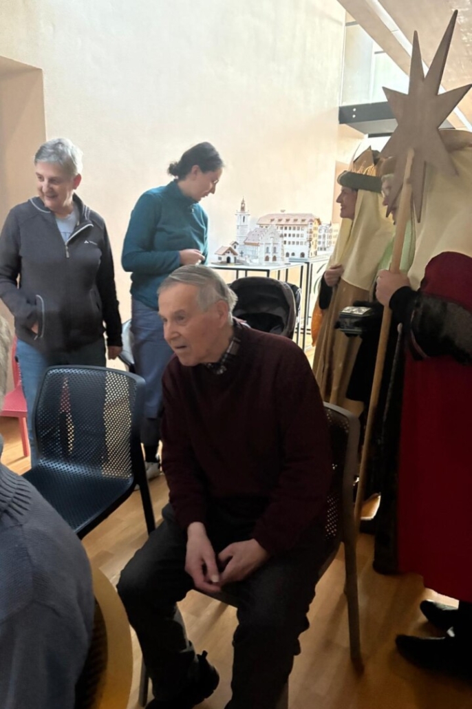 Auch heuer wieder freuten sich die Bewohner:innen vom Haus über den Besuch der Sternsinger. Im ersten Stock vom Betreuten Wohnen war es dann soweit. Aufmerksam folgten sie den Weisen und Liedern der Sternsinger. Ein herzliches Vergelt’s Gott den Sternsingern für ihren Besuch.