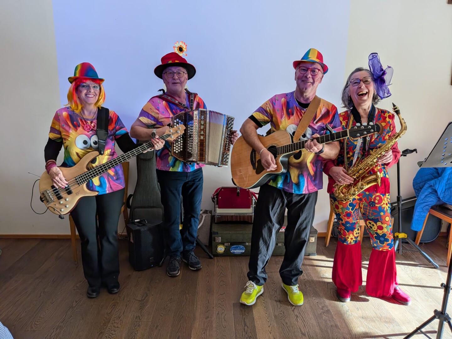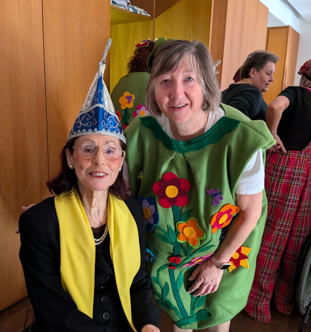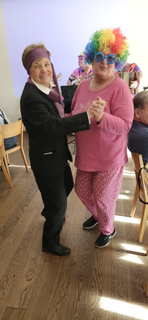 Heuer begrüßten die maskierten Bewohner:innen mit viel Applaus ihren Überraschungsstargast DAS ORIGINAL GR Walter Egger, um mit ihm gemeinsam eine kunterbunte Party zu feiern. Als großes DANKESCHÖN überreichte die Hausleitung Walter Egger das „Goldene Mikrofon“ für all seine Einsätze in den letzten 15 Jahren. Die MIA 3 sorgten mit ihrem bunten Musikprogramm für eine „mords Stimmung“. Es wurde viel gesungen, geklatscht, getanzt und bei der Polonaise marschierten alle mit.