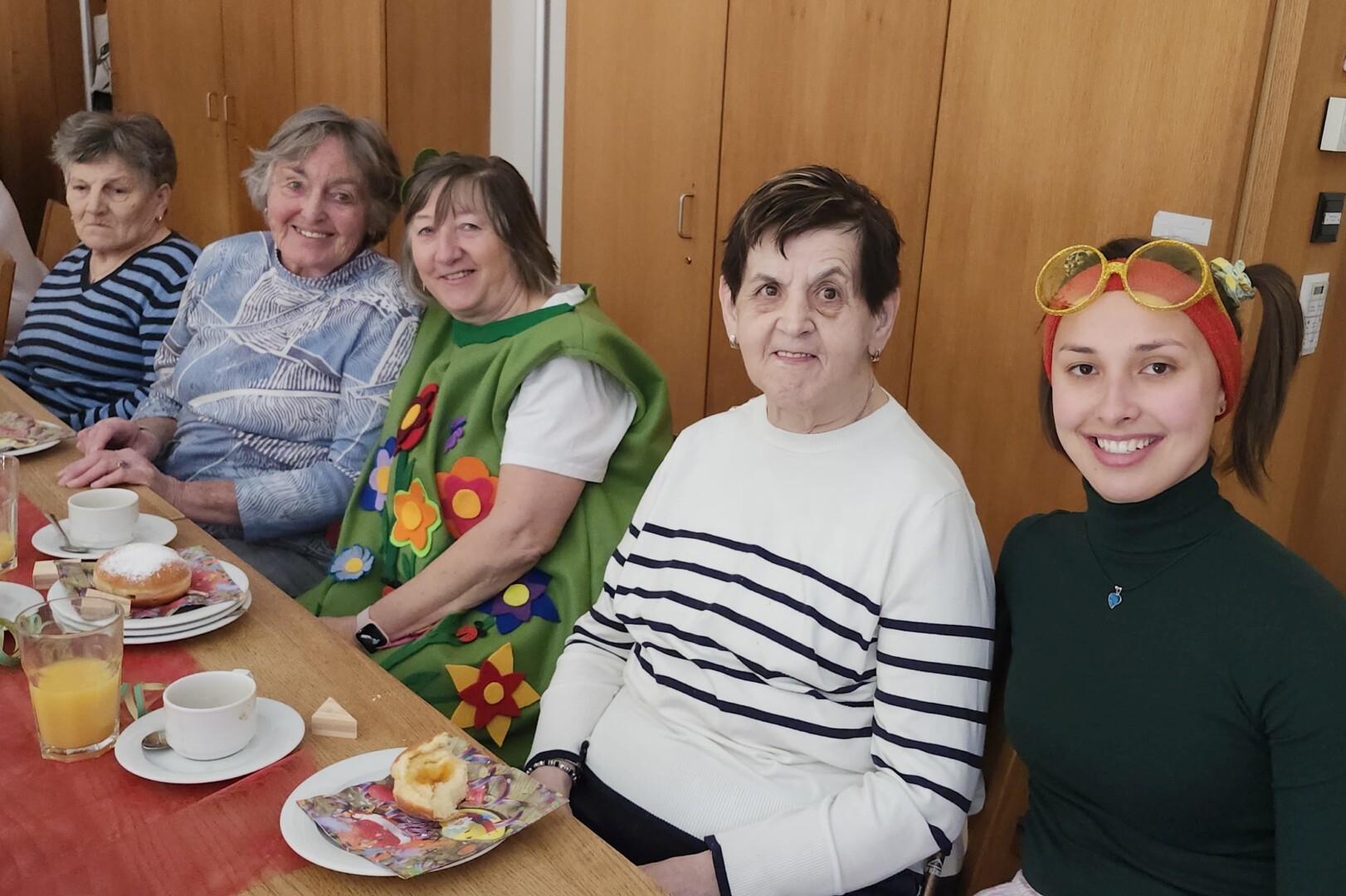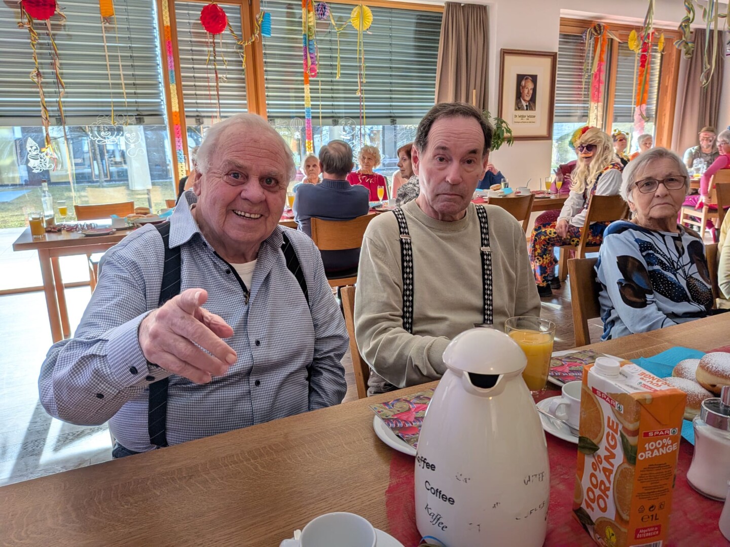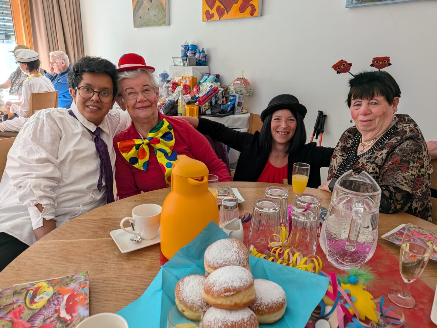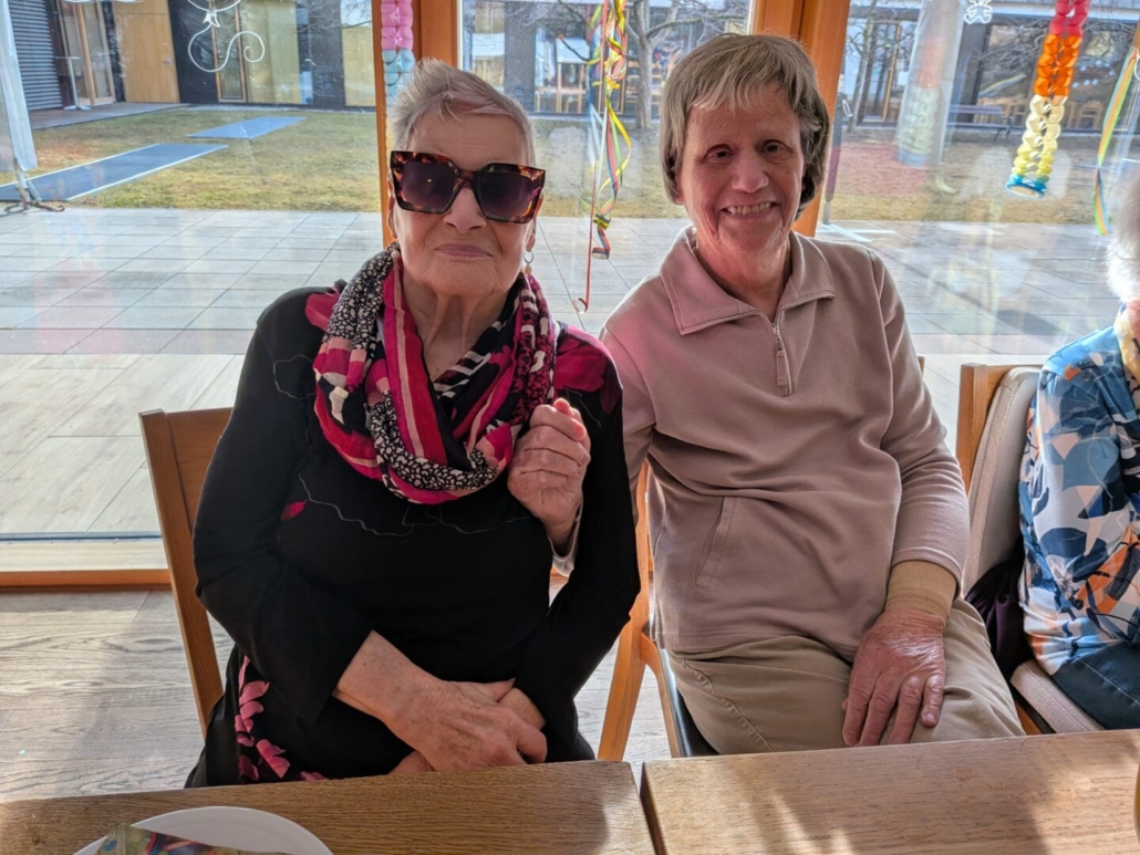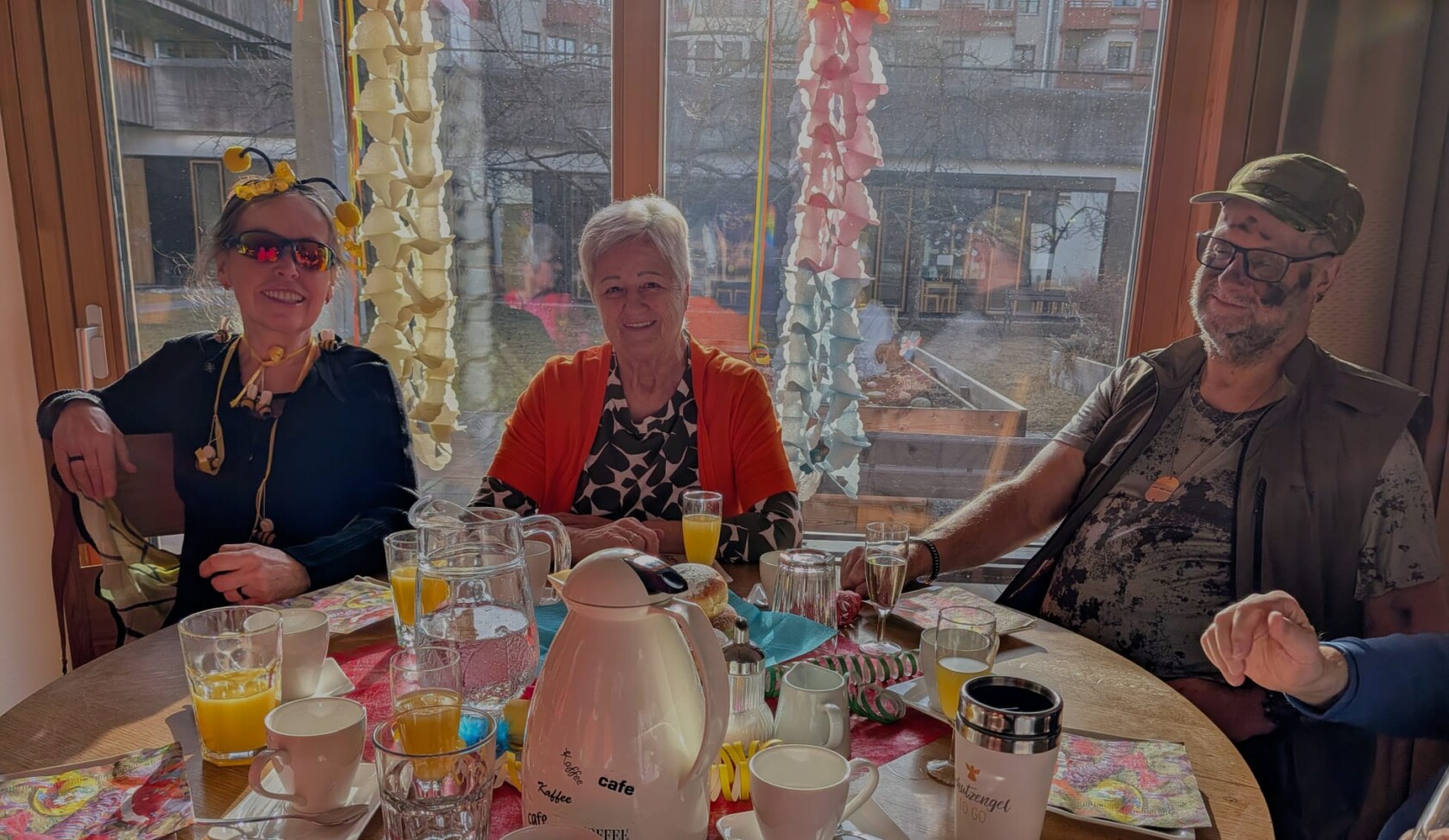 Alle konnten die leckeren Faschingskrapfen vom Dorfladen, a Glasal Sekt und a Tassal Kaffee in angenehmer Atmosphäre genießen. Es wurden alle Lose der Faschingstombola verkauft. Die Preise wurden von den Bewohner:innen zur Verfügung gestellt und jedes 3. Los war ein Preis!