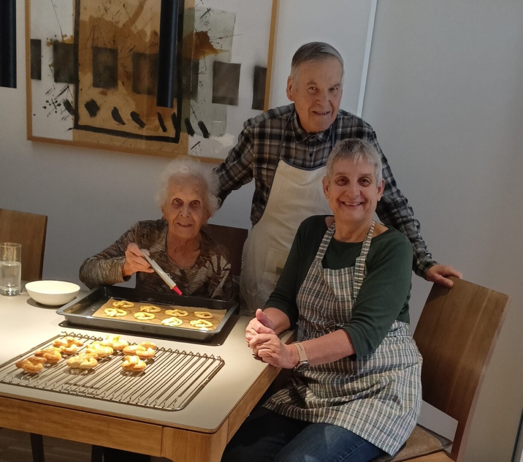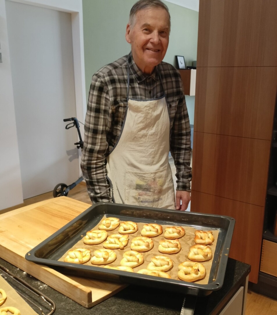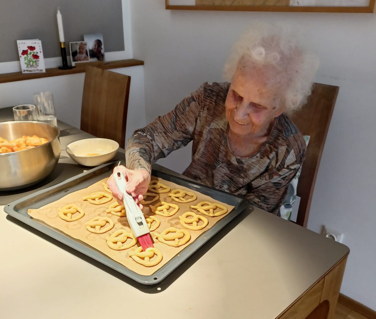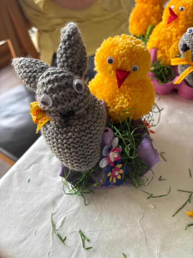 Die Bastelgruppe bastelt schon seit geraumer Zeit jeden Mittwoch Nachmittag mit viel Eifer und Begeisterung an der Osterdekoration für das gemeinsame große Osterfrühstück. Alle sind schon sehr gespannt, wie schön heuer die Tische dekoriert werden. Auch dieses Jahr hat die Bastelgruppe Palmsträußchen für alle Bewohner:innen vom Haus selbst gebunden. Drei Bewohner:innen haben die dazu gehörigen Palmbrezeln selbst gebacken.