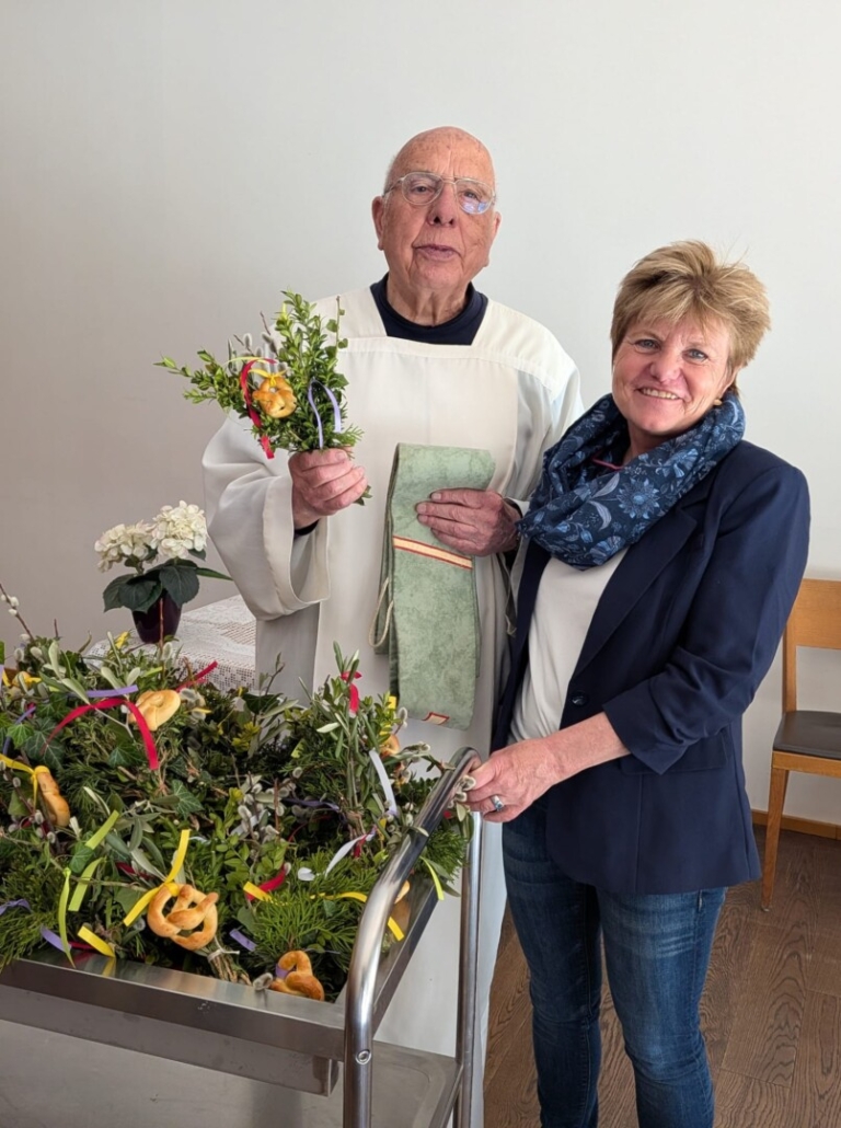 Beim Gottesdienst am Mittwoch vor der Karwoche hat Pfarrer Rudolf Theurl die schönen Palmsträußchen gesegnet und an die Bewohner:innen verteilt.